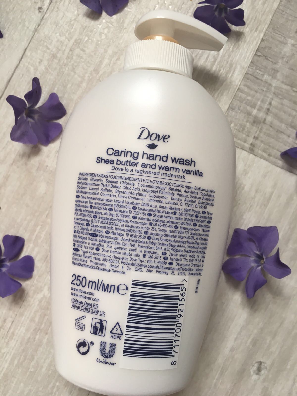 Untul de shea si parfumul minunat de vanilie din sapunul lichid Dove Iti ofera sansa de a te rasfata in fiecare zi.Cu o patrime crema hidratanta, ajuta la ingrijirea mainilor, lasand plielea moale si neteda.Purely Pampering: iti rafata atat mainile cat si pielea in fiecare zi.